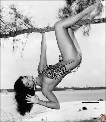 The Father of Lumpish Fellow stirs.  Since I am inherently brave, I begin praying, “God, if you exist, please, please, please, make me invisible.”  Unfortunately, God is either a myth or was preoccupied, perhaps dealing with Bill Clinton’s Monica Lewinsky troubles.  Father of Lumpish Fellow turns, looks left at The Second Coming of Bettie Page and right at Miss Pothole. Can you guess whom he chose to address?