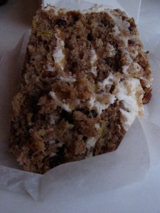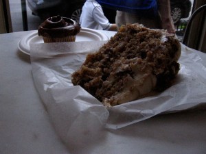 Then, we opened the door and what did we see – both Hummingbird Cake and one chocolate banana cupcake!  We blurted enthusiastically: