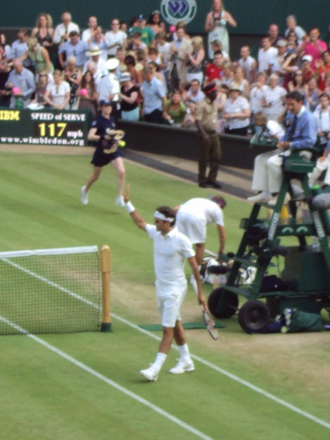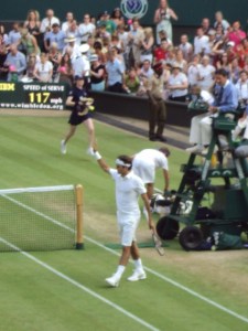 On Sunday, the Fourth of July, Milton and I were in our respective hovels situated on the East and West sides of Manhattan watching Rafael Nadal put a definitive stop to the Tomas Berdych Express at Wimbledon, so all was right in the tennis world once again.  Elaine, my company’s Marketing Director, is telecommuting and Skyping from the UK, so she was able to attend Wimbledon last week where she saw Roger Federer advance to the Quarterfinals when he soundly defeated Jürgen Melzer of Austria.