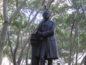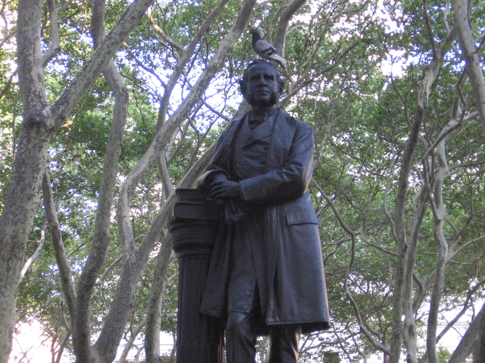 Flaunting power atop William Earl Dodge statue in Bryant Park!