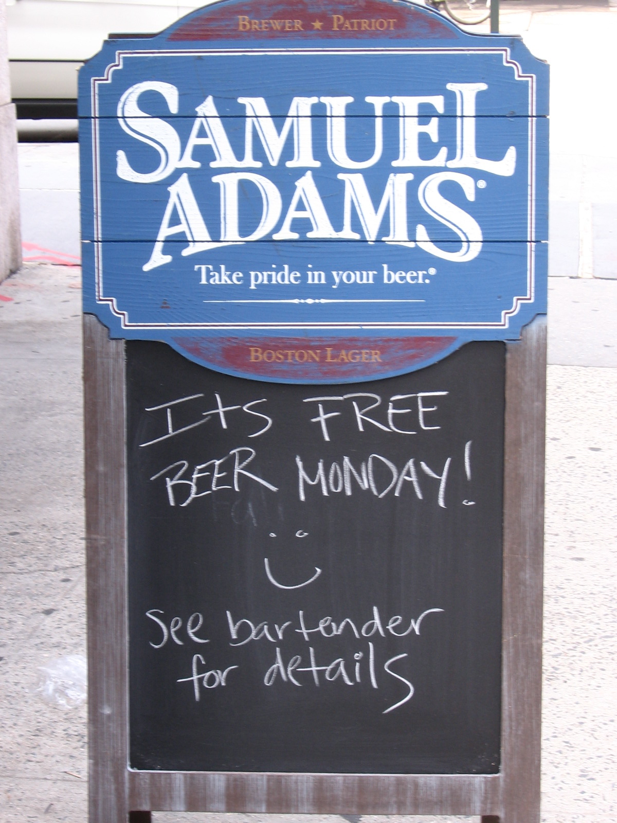 This inviting sandwich board I saw sitting outside Puffy’s Tavern, a watering hole on Hudson Street in TriBeCa near where I work, but I resisted the invitation to chat up the bartender and kept walking.