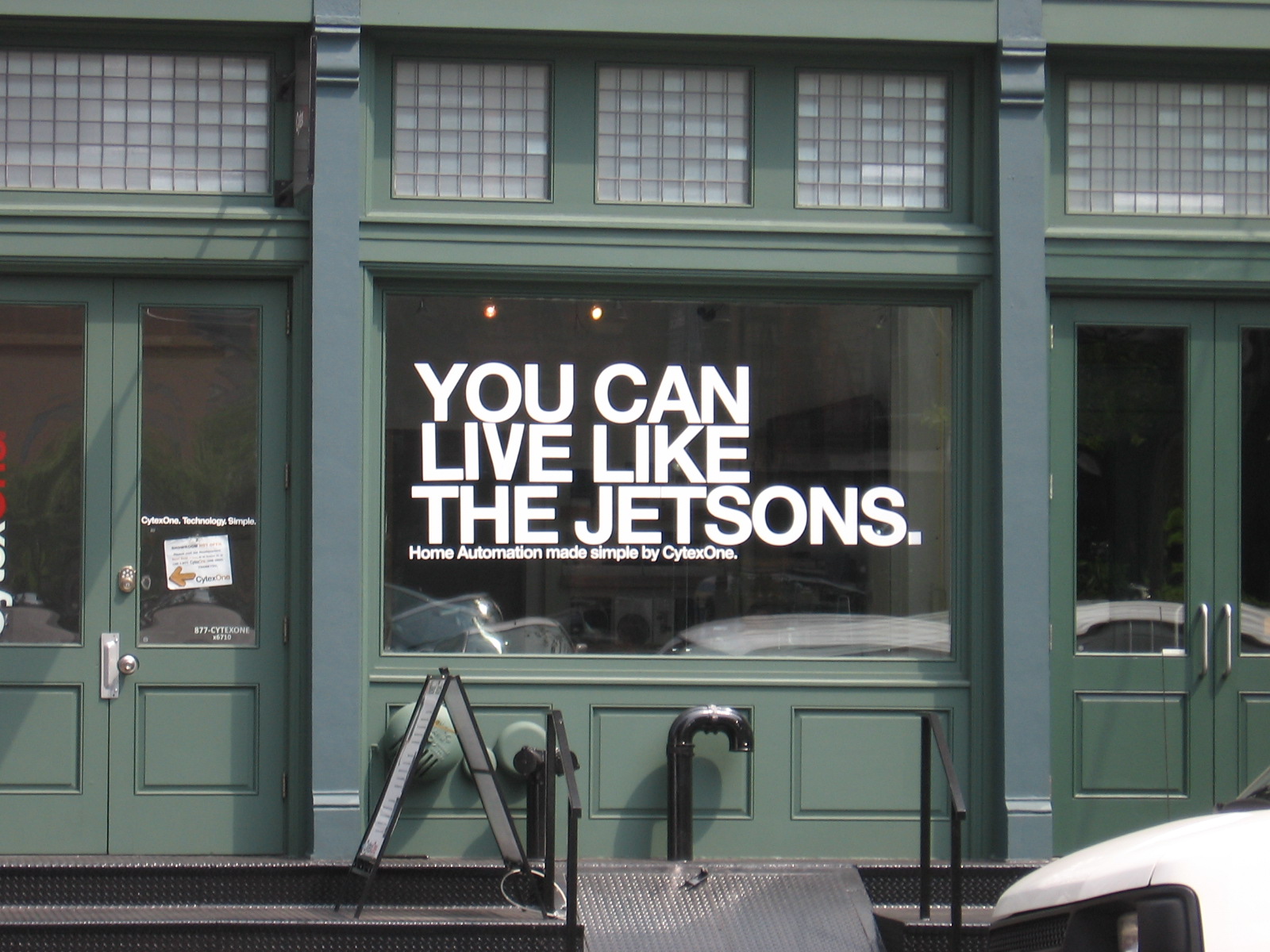 When I crossed Hudson at Duane, this message drew my attention considering that I earn a get rich slow salary forcing me to live much more like the Flintstones.