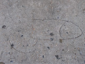 I wondered who was compelled to draw a dick in wet cement, and imagined it was a guy with penis envy. This impression made me recall the time I witnessed one cab driver rear end another on Columbus Avenue some years ago. The Rear Ended cabbie stepped out of his vehicle, as did the Rear Ender. They immediately got into a shouting match, with the Rear Ended cabbie tugging at his crotch and screaming repeatedly at the Rear Ender, “Suck my dick!” Not to be undone, the Rear Ender grabbed his junk and shouted back, “You suck mine!” My social anthropologist side found this tirade intriguing for I could not imagine two irate women in a similar situation stroking their nether regions while demanding of each other, “Eat me!” If these two cabbies were indeed compelled to perform sixty-nine together, I was baffled how this would have provided the solution to the problem of the busted taillight.