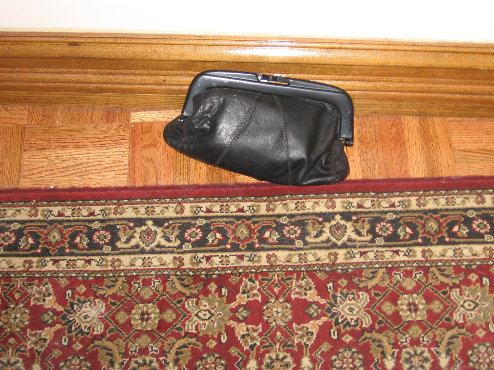 On a recent evening, I return home and see a woman’s black leather clutch bag lying on the floor in the hallway across from my apartment’s door.  This is not a common site and I wonder if there is some crime scene element here.  With this in mind, I instantly feel a bit queasy.  I also think of the recording that I frequently hear while riding the subway: