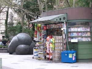 That evening, after work, when I exited the 72nd Street station on the 73rd Street side, I had the sick feeling that Odalisca had left the premises, but much to my delight I found her now perched near a newsstand.  Possibly it was decided that she was hogging too much space in the area where music is performed on weekends so she was moved a little lower and to the left of the station’s entrance.