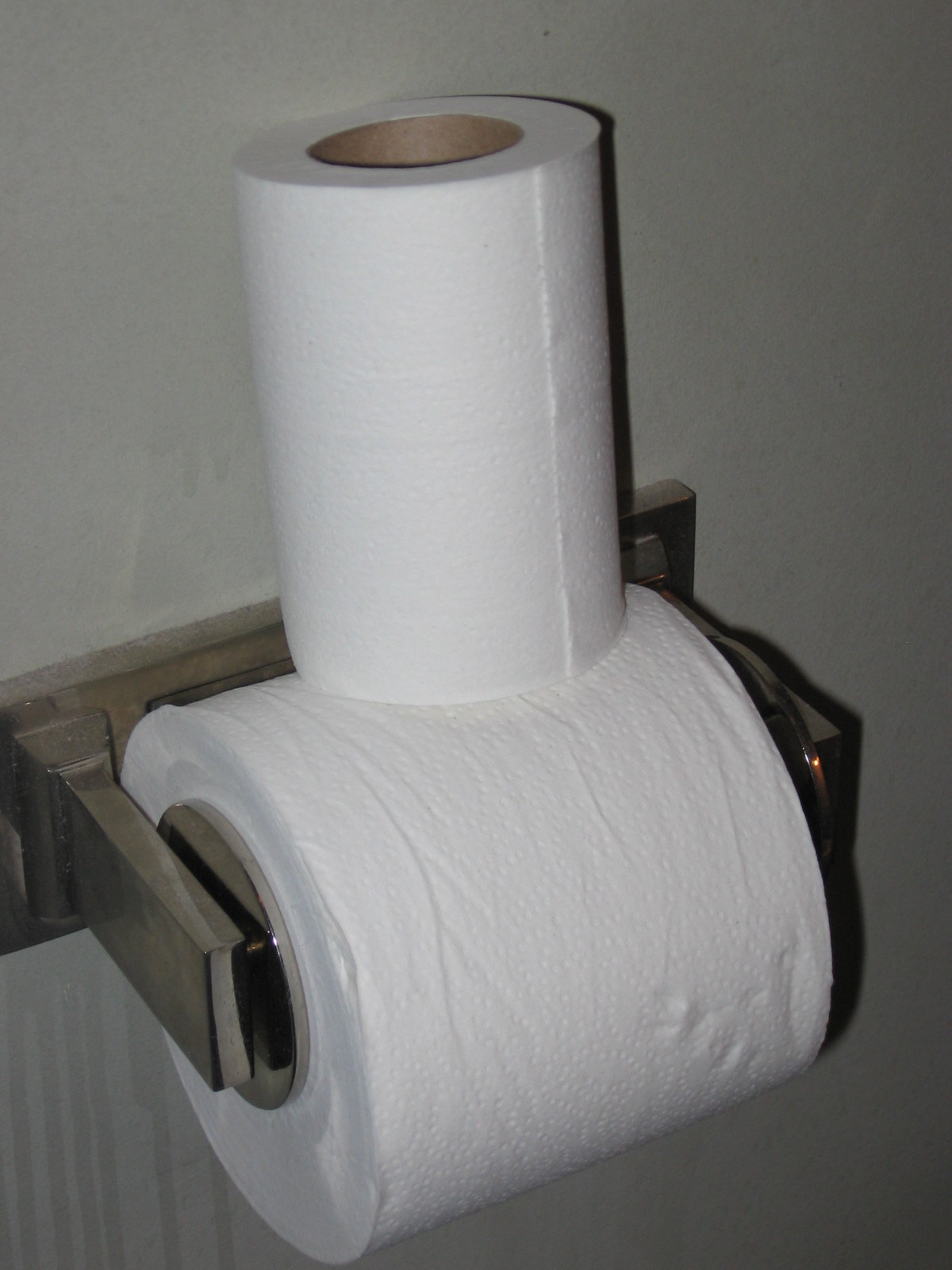 I arrived at work still thinking deeply about the fate of Odalisca.  Then, I entered my department’s bathroom, and was distracted by the toilet paper.  Someone, not amongst my colleagues, was pulling this idiocy for about a week.