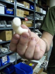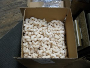I follow Greg into our warehouse and see a large box. He slices it open with a box cutter. We are now staring at a massive pile of packing peanuts that reminds us both of Cheese Doodles.