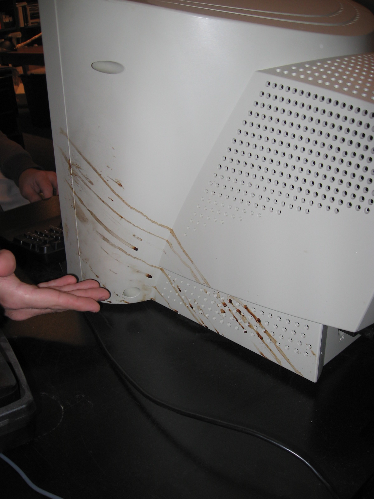 Just as Ling and Under Ling’s problems seemed to subside for reasons that are clear as mud, Greg’s problems with his vintage PC began to escalate. He alternates between two CPU’s under his desk, one worse than the other, but he had jury-rigged a system for himself that I don’t try to understand, but it seemed to work, and he seemed content. Greg is not a complainer and knows to only get me involved as a last resort. Since neither of his malfunctioning ancient CPU’s were allowing him access to the server, he mentioned it to me, and I suggested he call Aaron. Thinking about short and curly beard droppings littering his desk, Greg performed emergency life support on one of his CPU’s and it regained a pulse. Unfortunately, his first term Clinton era monitor blew out. Greg announced: