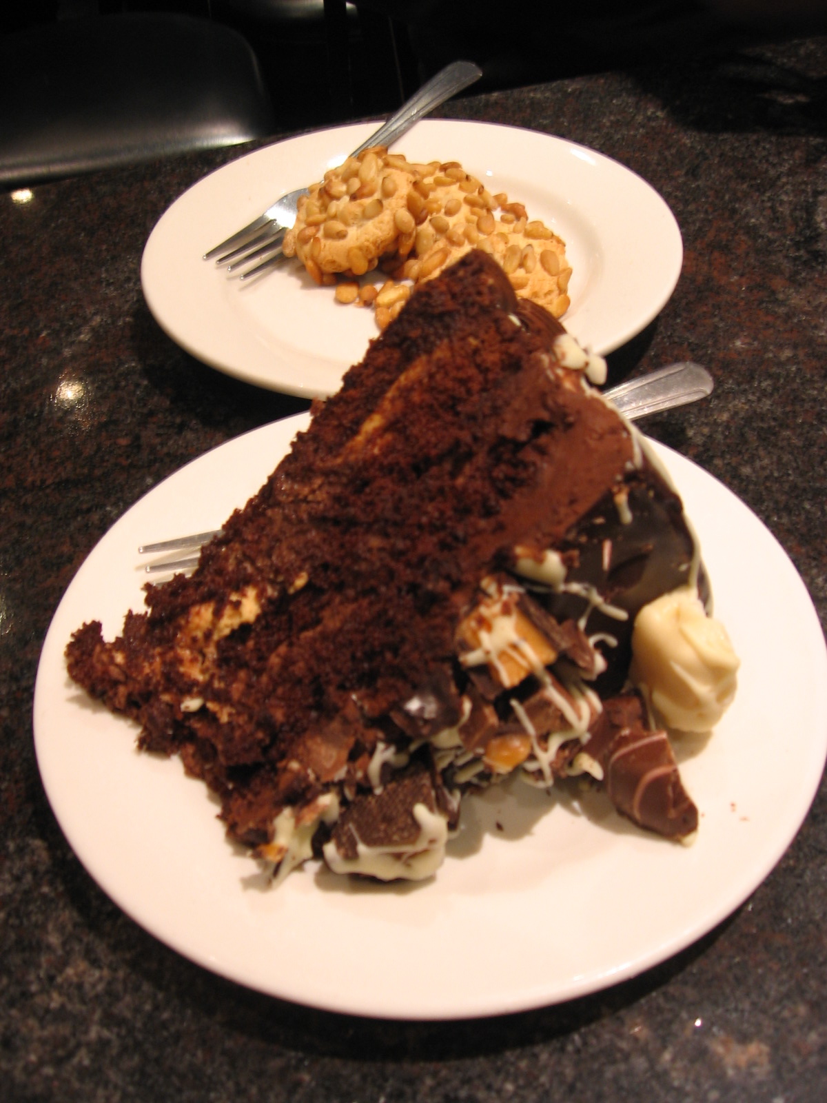 We give up our futile search for this establishment with a name I cannot remember at an address we cannot find that’s replaced a business that has ceased to exist.  We cross the street to Pasticceria Rocco’s where we indulge in more Italian desserts.  I have pignoli cookies that are similar to the ones my mother used to get from an Italian bakery in North Beach at Christmastime when I was growing up in San Francisco.  Albee has what I pronounce “the Milton cake,” a towering, terrifying, artery clogging chocolate confection that’s actually called the Chocolate Lover’s Fantasy.  Albee renamed it “two days worth of dessert” since it was impossible for him to finish.