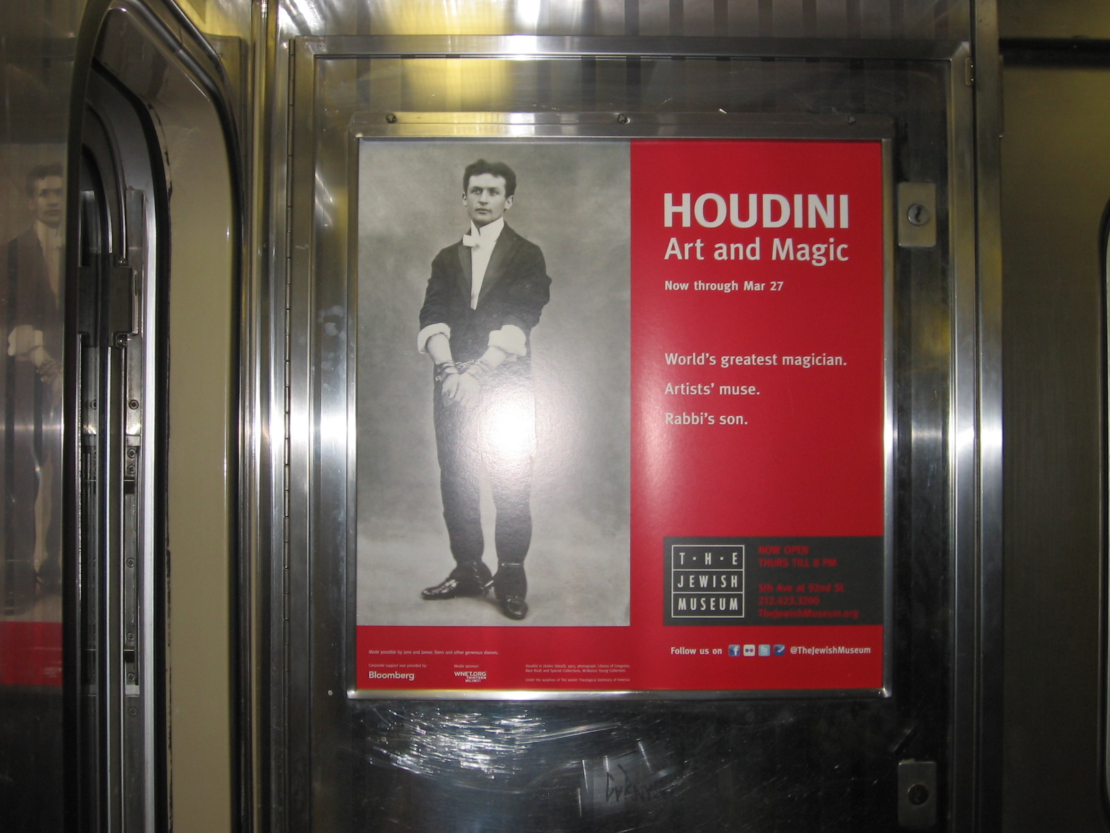 Crummy subway train poster photo of what appears to be a very interesting exhibit.