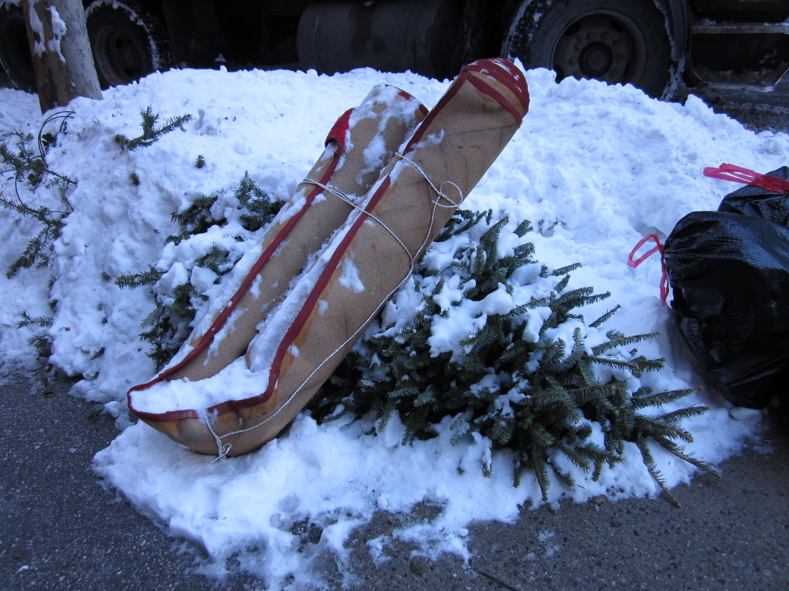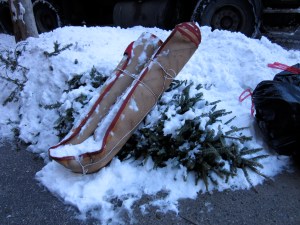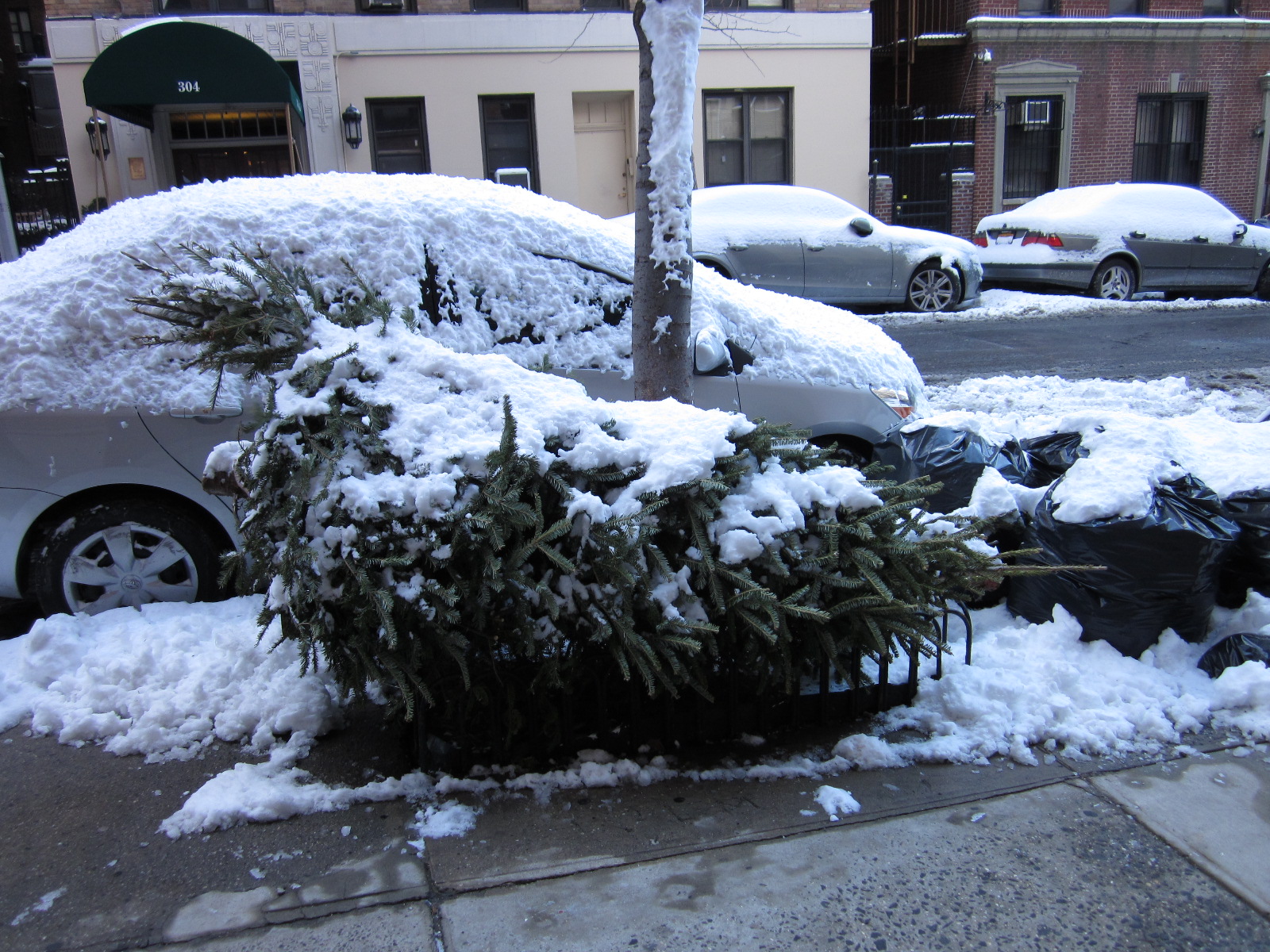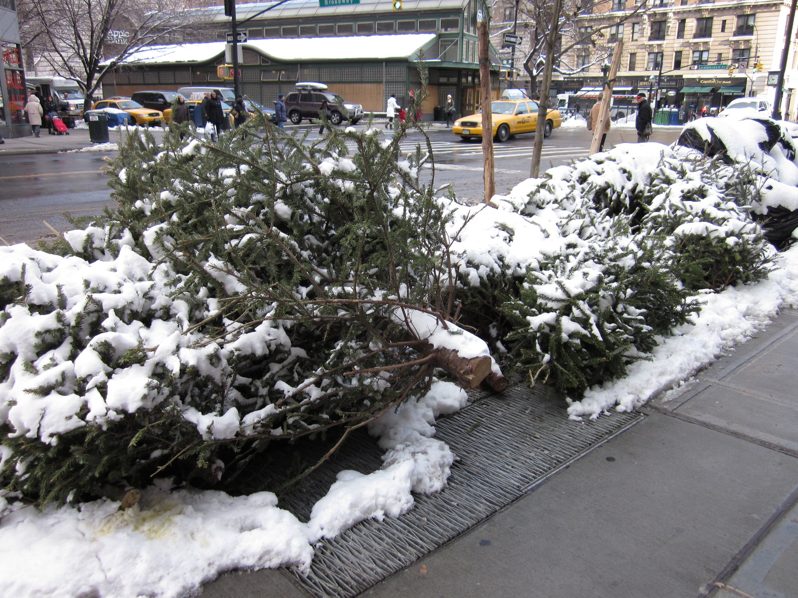 I was running errands on the Upper West Side.  Everywhere I looked I encountered piles of discarded Christmas trees heaped on the sidewalk waiting for the trash collector, another post-holiday Gotham City tradition that is not as exalted as when those same trees were standing tall and fresh or when they were clad in traditional tree-drag.