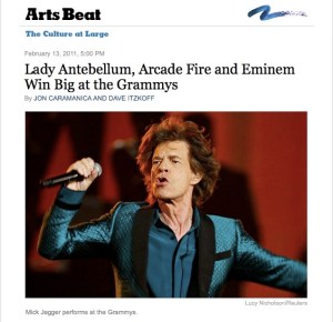 I did enjoy Mick Jagger’s energetic tribute to Solomon Burke very much, although I noticed afterward I felt like I twisted an ankle just watching him sprint and gyrate all over the stage.  For a guy pushing 68, Jagger is a phenomenon.  If that is a hearing aid in his left ear, it reassures me that he is indeed human.