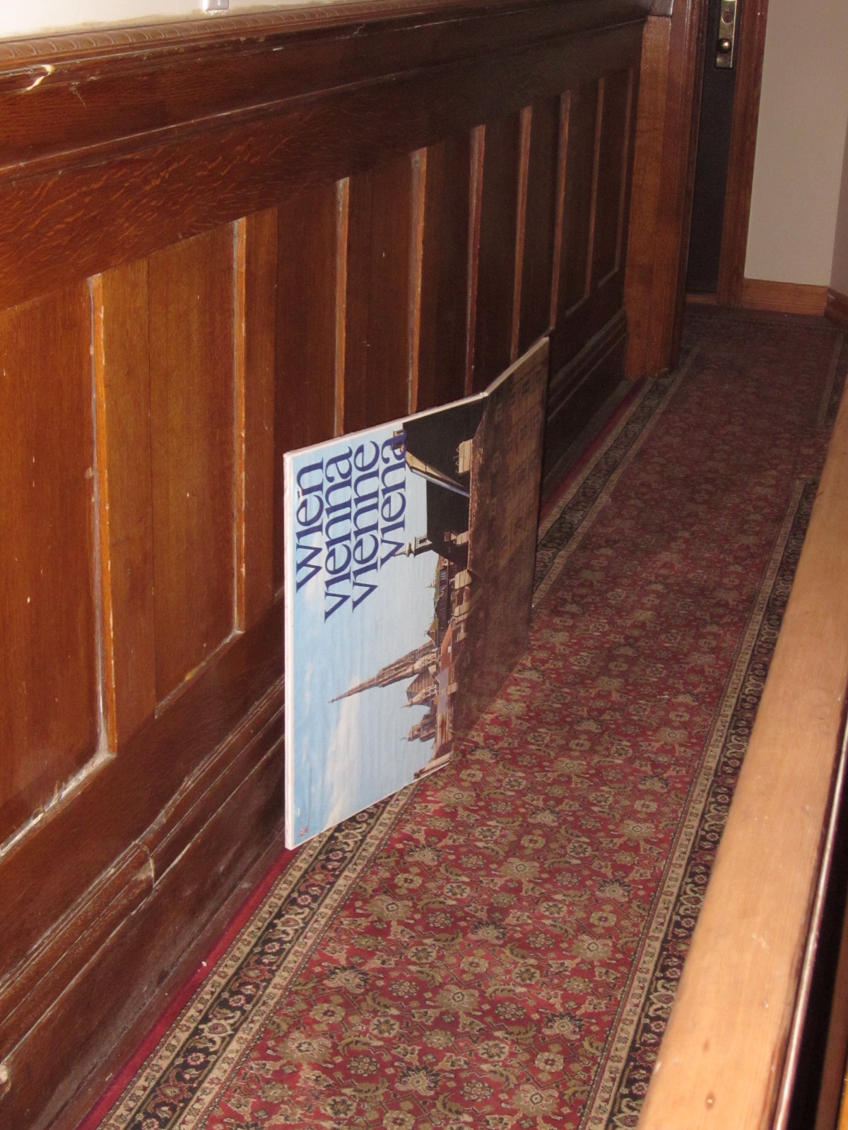 As I headed down my building’s stairs en route to my Journey Of the Broke, I had one more encounter with my neighbor’s Vienna poster, this time in the hallway of the floor beneath us on its side dented in half.