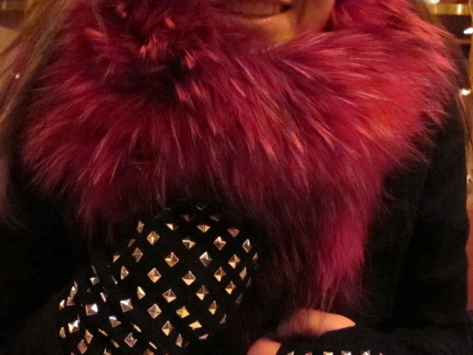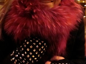 Coco petting her Abraham Lincoln beard with a studded cashmere Michael Kors glove.