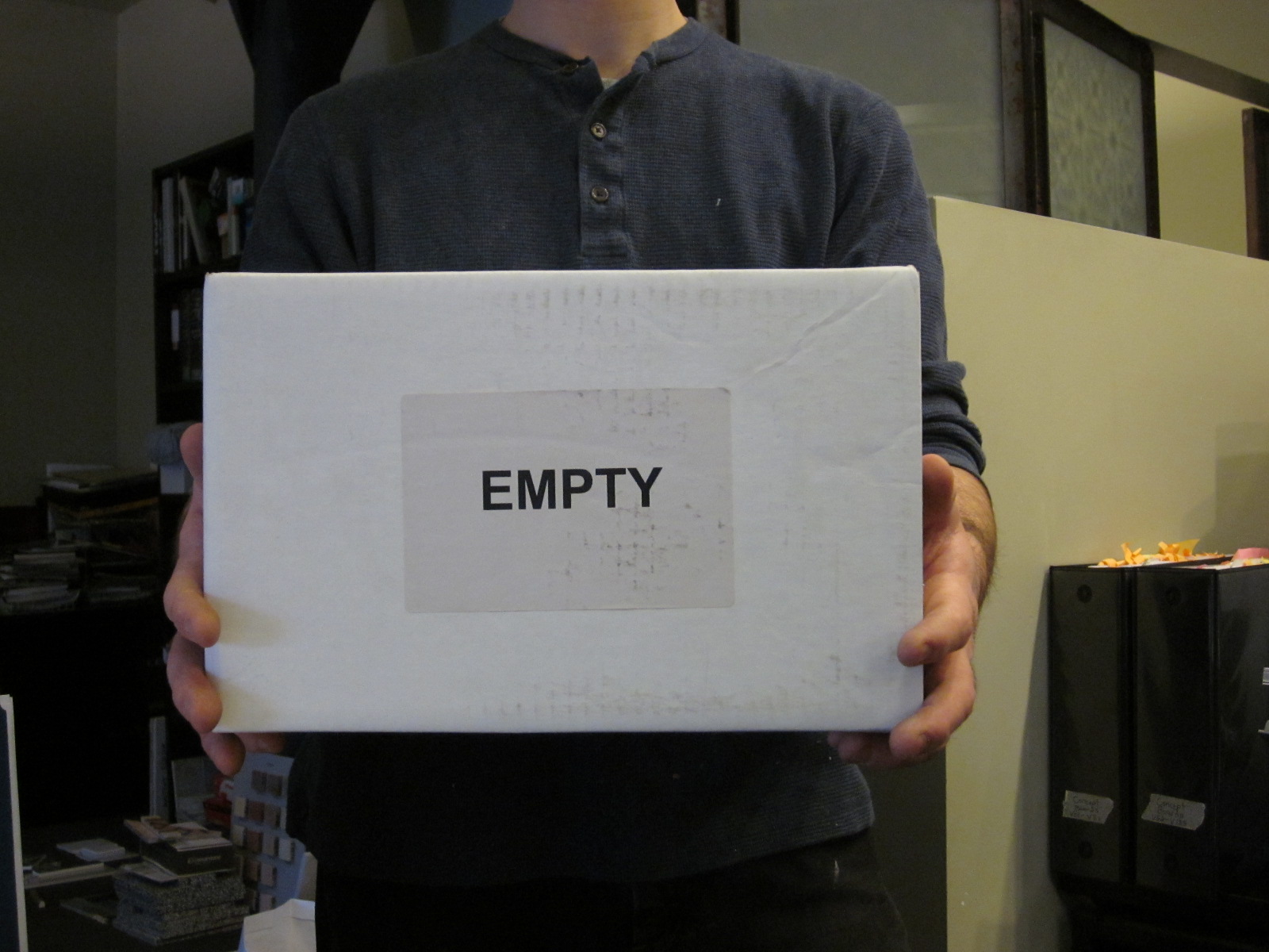 Or, possibly because after unpacking a delivery of seventy-six boxes of sample tile, the last box he encountered was this one containing contents true to its label: