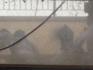 Greg:  Two pigeons are really going at it on the air conditioner!  It’s like a rape.