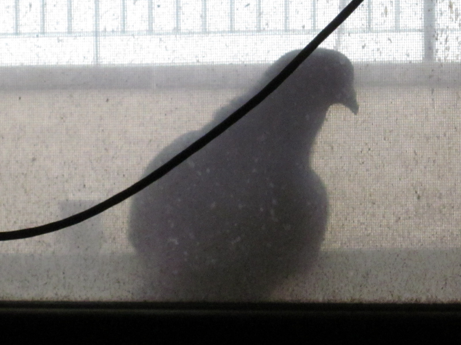In response I grabbed my camera and entered the warehouse where indeed nature was taking a very loud, ferocious, feather-flapping course right outside the window atop the AC.  I highly regretted not having my Flip video at the ready and equally regretted being too burned out at that hour to recall I can also shoot video on my Canon digital camera.