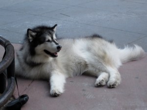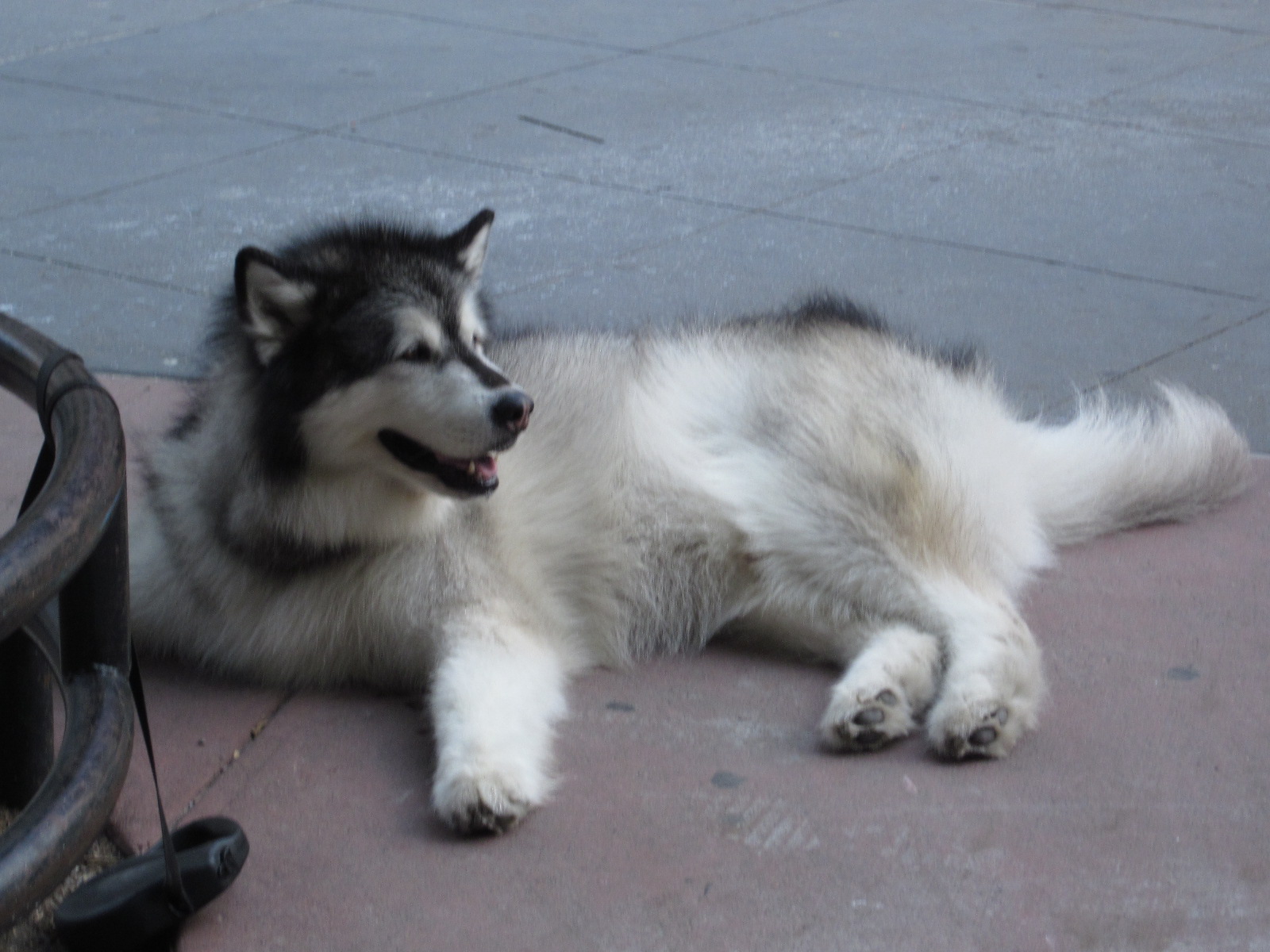 Scout was not the only special hound I encountered while pounding the Tribeca pavement these warm weather days. Recently on Greenwich Street, I saw stately Hubert, the canine mayor of lower Manhattan. Hubert was the only dog I photographed in winter. A noble nine-year-old Alaskan Malamute, he manages to look warm on the coldest winter day as well as cool in the heat. In my next life, I’d like to be Hubert, but I suspect I’m much more like yodeling Scout.