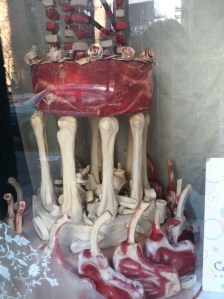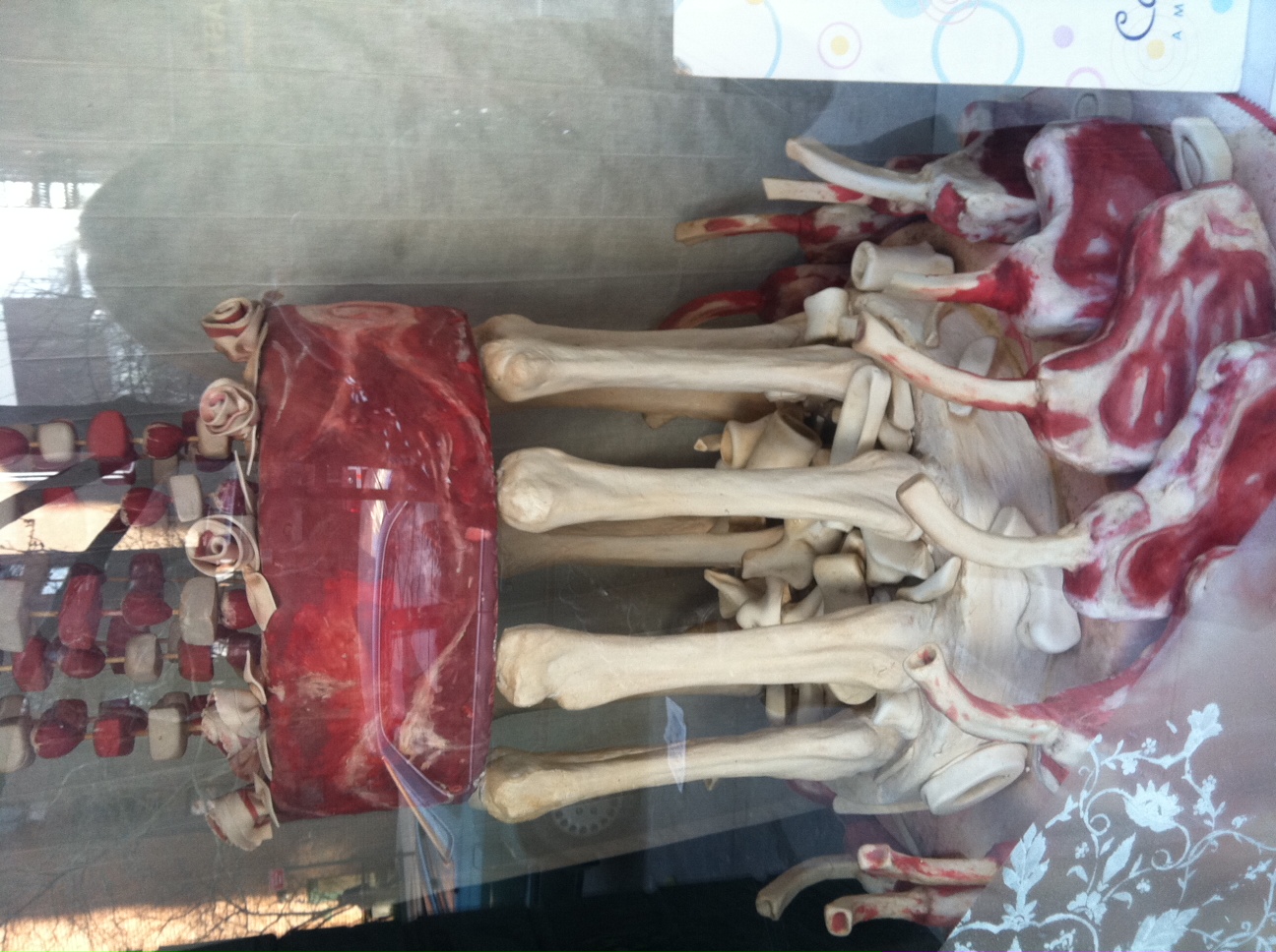 Coco (instantly picking up on my tsunami of depression): No, silly, I thought of Lame Adventures!  I saw this raw meat wedding cake made up of chops and bones and steaks and bacon, and thought, “What is that? I have to tell her!”