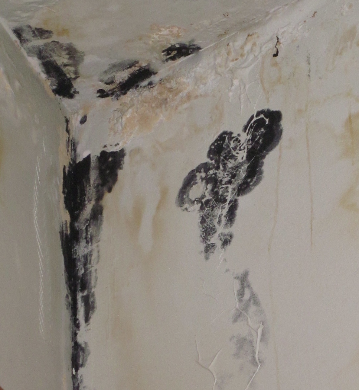 This week’s cooler temperature has put a halt to the leak and temporarily dried the mold that is creeping across the ceiling with the confidence of a nearsighted bucktoothed nerd plowing through a trigonometry final.  The current state of the bathroom’s ceiling mold also brings to mind 1947-J, an oil on canvas painting by abstract expressionist painter Clyfford Still.