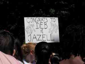 Deb and Jazell mingling post-nuptials.