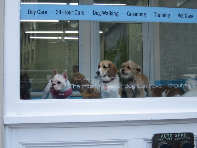 Moving onto dogs, particularly those killing time, and fortunately not each other, in the window of the new Biscuits and Bath doggy spa that has recently opened on Hudson Street in TriBeCa.  Every single time I walk past this place Patti Page singing a novelty ditty that she recorded in 1953 called, How Much is That Doggie in the Window, fires up on my internal iPod.  I would so prefer hearing her sing something else, maybe Conquest, but my mind refuses to go in that direction.  Furthermore, these hounds are not for sale, which makes that song popping into my head every single time I walk past that window even more baffling.