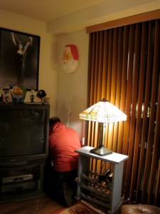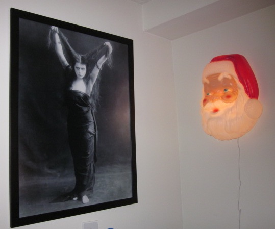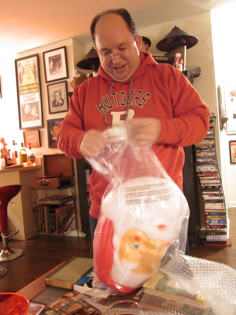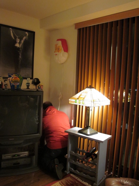 My buddy, Martini Max, is bitten hard every year by the holiday spirit that eludes me.  This year, when I visited him over Turkey Day, he was elated to learn that he had had some deliveries on Turkey Day Eve to further enhance the ambiance of his bachelor pad. Pictured below is glimpse of genuine Fa La La Martini Max-style: