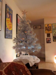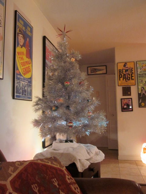 4. Love Max’s tree! It looks like he has the same vintage Shiny Brite ornaments that I do. My ex-mother-in-law gave them to us years ago when she quit putting up a big tree and opted for a silver one even smaller than Max’s. Cool movie posters too…