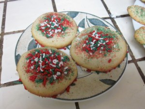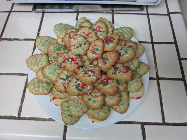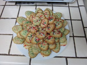 While my sister, Dovima, and I pound Trader Joe’s Brandy Beans by the fistful, her daughter, my niece and heir to my string collection, Sweet Pea, is busy baking all the Christmas cookies.