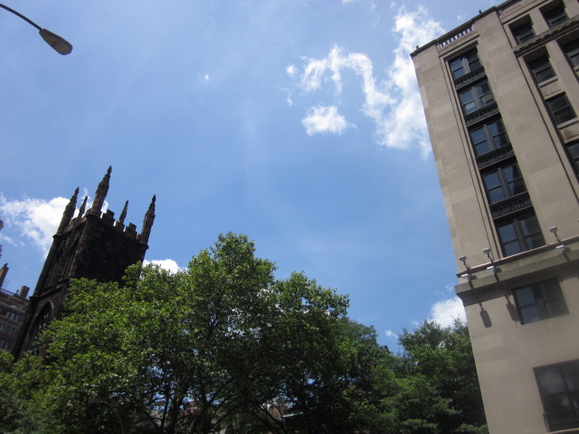 Beautiful weather and blue sky on lower Fifth Avenue in Green Village.