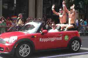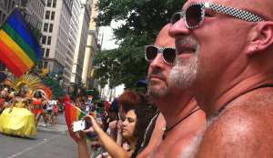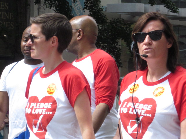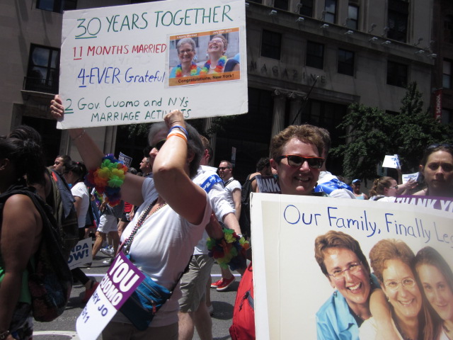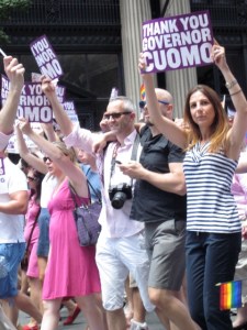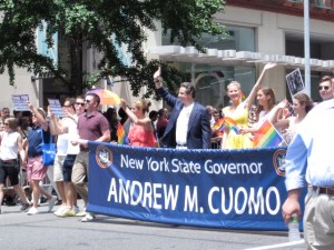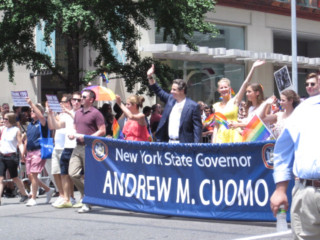 Big cheers for LGBT hero Governor Andrew Cuomo marching with his partner Sandra Lee.