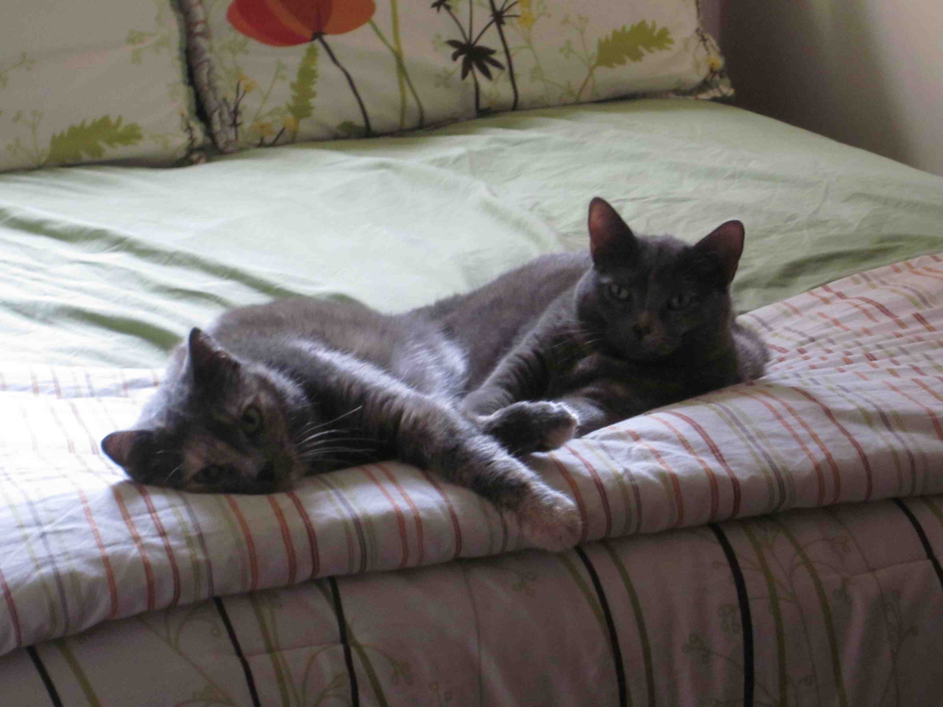 • Tania, Primo is the bigger puss and you’re right, she consumes a lot of acreage. Her serf has devised a two step program so she can climb onto the bed because her middle age weight gain is a scosh problematic. Segundo is the friskier one who can frequently be found scaling the ceiling.