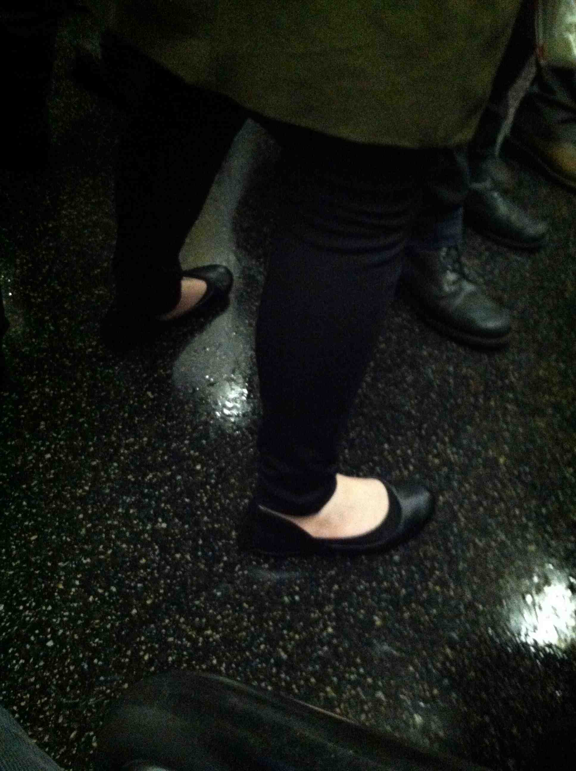 Subway rider who failed to read the memo that wearing ballet flats in 21 degree weather will not induce spring.