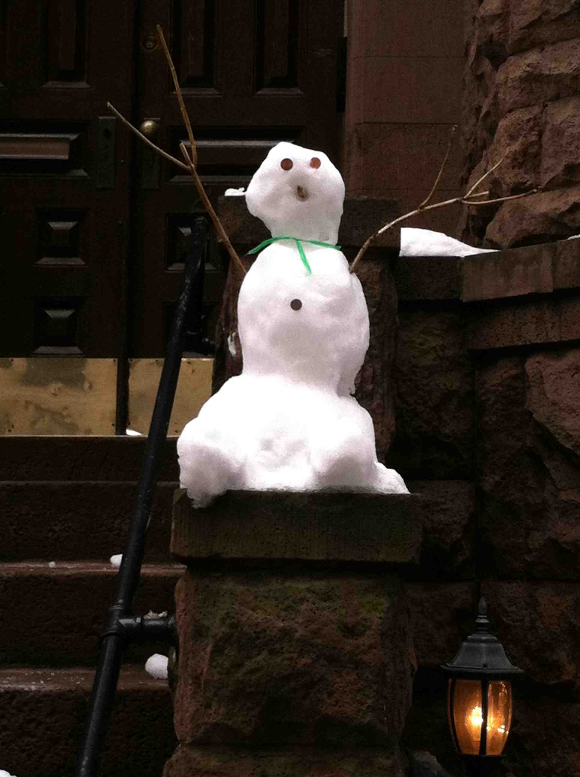 One welcome sight I’m sure I glimpsed was this miniature Frosty on a brownstone’s stoop.
