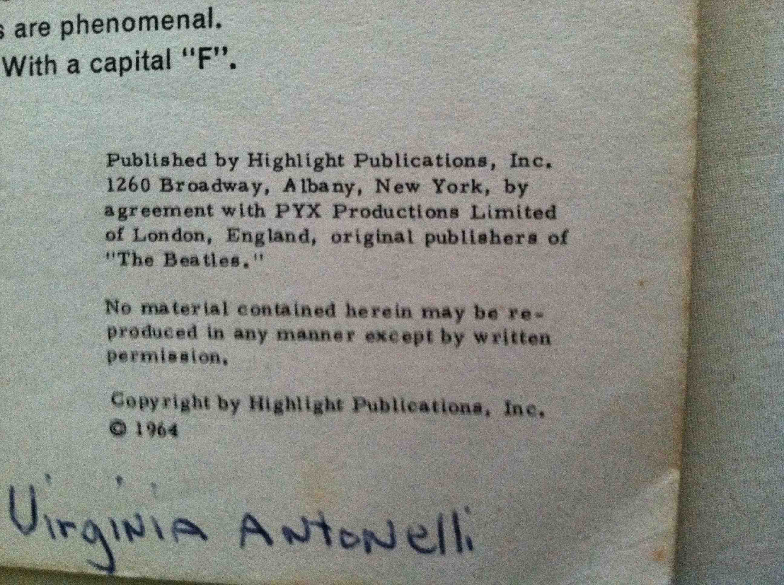 10. I have this fan book too, but one of the corners was gnawed on by a mouse at some point in the last fifty years, so I imagine it wouldn’t be worth much. I was a senior in high school when I acquired it in 1964, right when the Beatles were just becoming known here, as you mentioned. They were such a huge departure from what passed for rock and roll at that time, i.e. “Sugar Shack,” “Blue Velvet,” “Walkin’ in the Rain,” etc. It was a very exciting time!