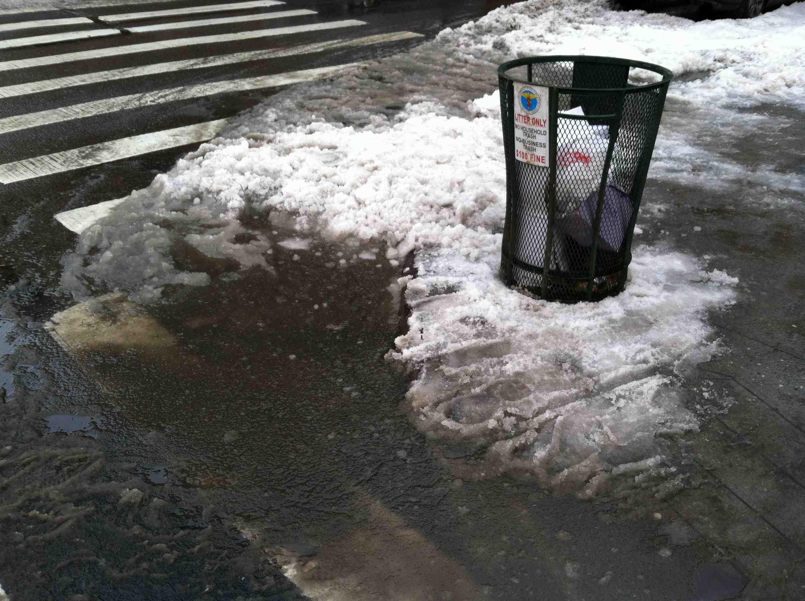 I layered less, wore my lighter down parka, didn’t wear a hat and hightailed up West End Avenue on a walk that predominantly entailed dodging melting snow dripping off awnings, sidestepping mounds of slush and jumping across ankle deep curbside puddles that could have doubled as ponds. Not so simple sidewalk strolling that doubled as an aerobic workout.
