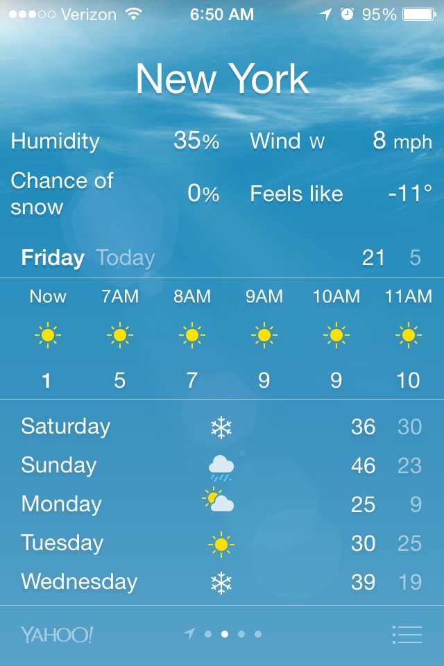 I’ve read in the New York Times that New York is on track for the coldest February since 1934. I wasn’t around 81 years ago to recall that winter, but this February is certainly in the record books inside my head. It’s been cold in winter, but I never remember it being this cold. I wish that I could hibernate until mid-March. Yesterday I woke before the alarm, a melodic tune reminiscent of an air raid siren. After checking the time, I checked the weather.
