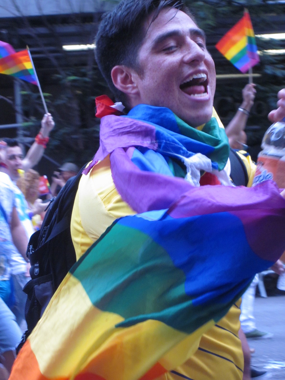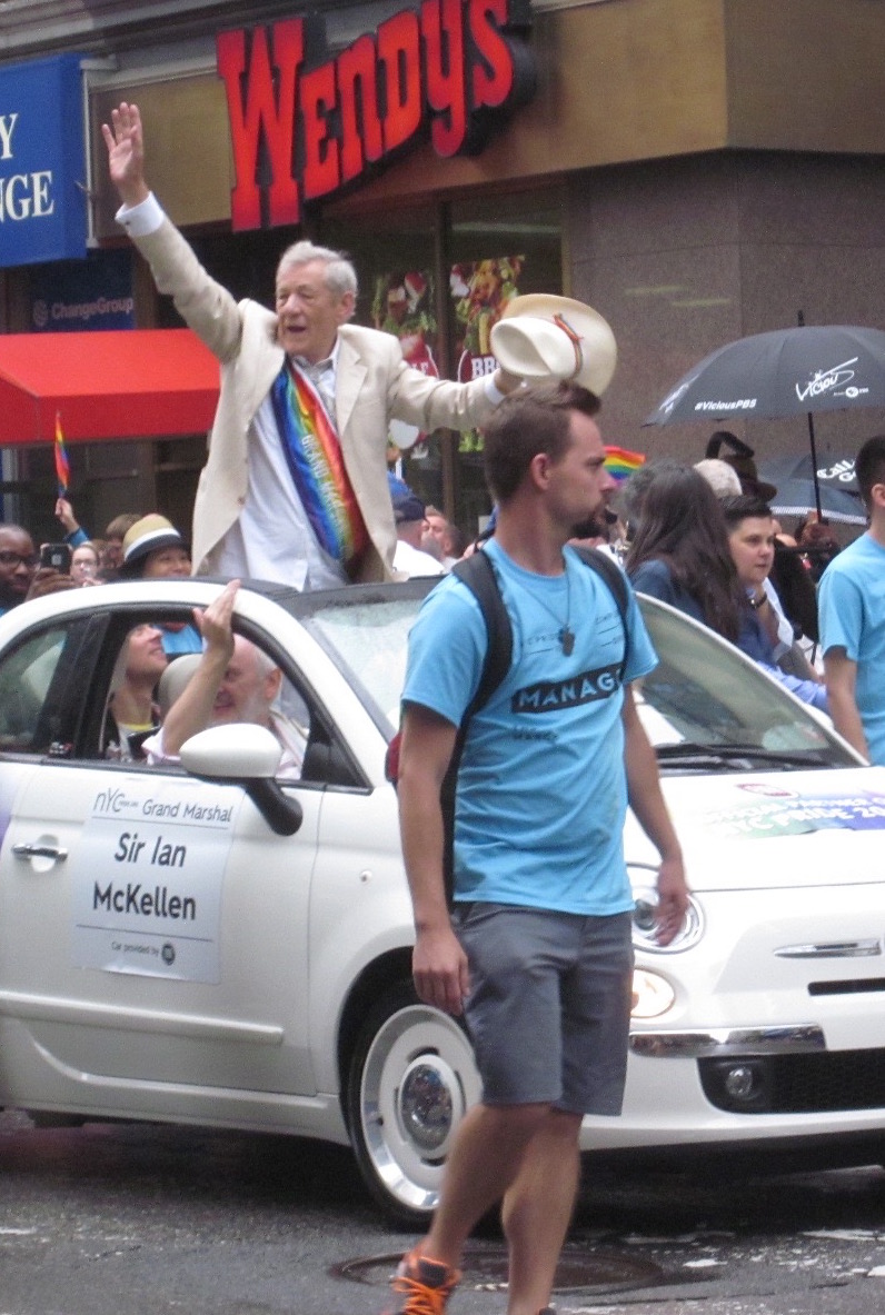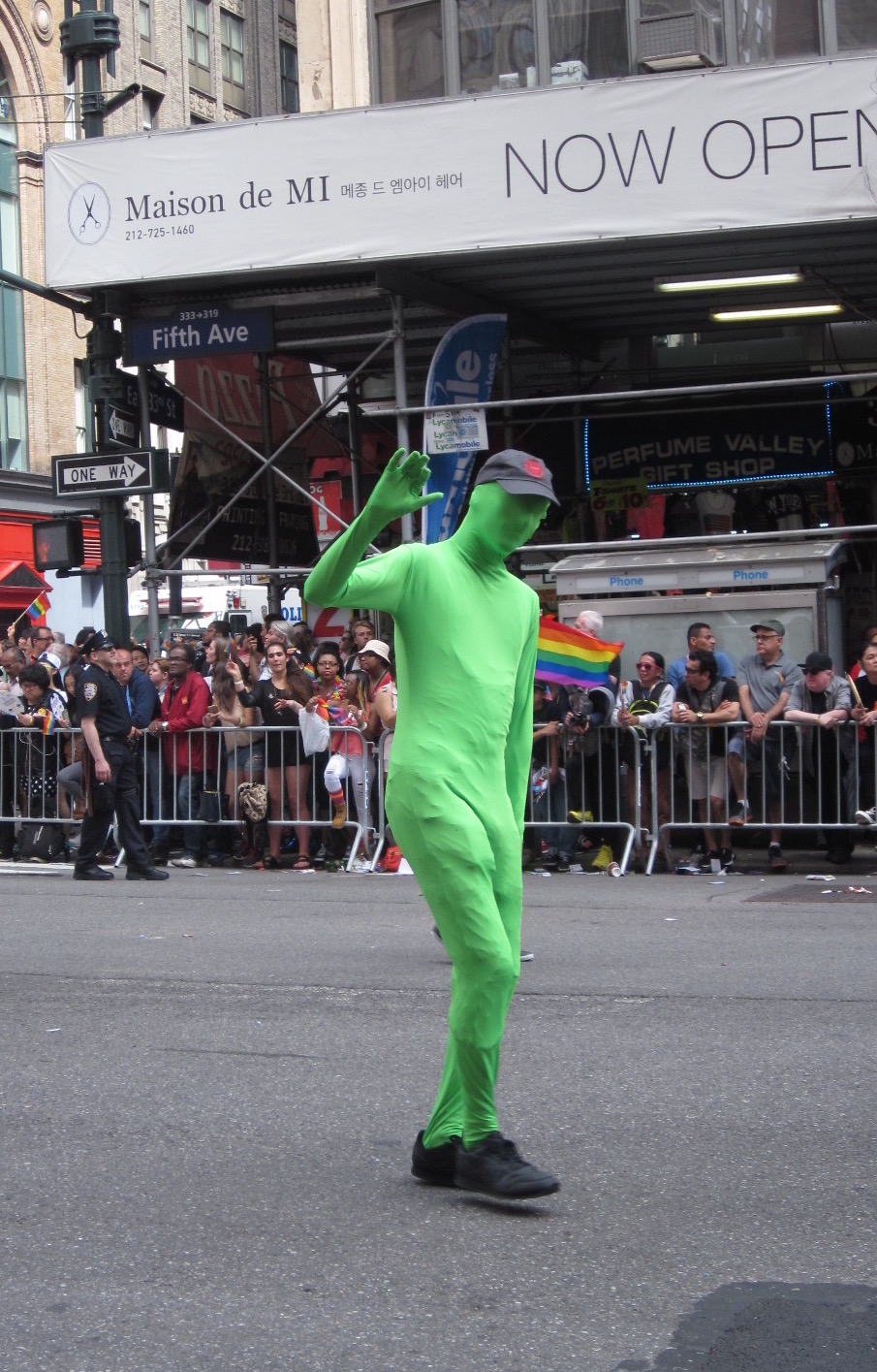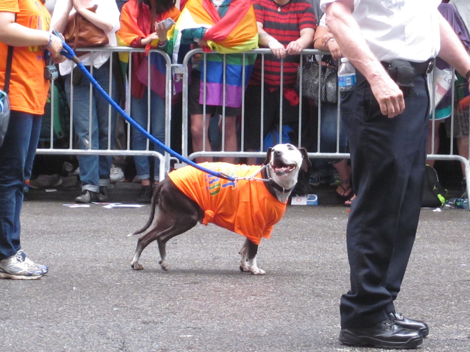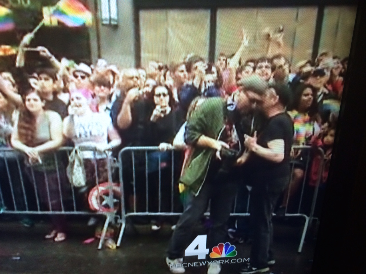 • How the hell Milton managed to catch that from the comfort of his post-Pride man-cave chair, his Barcalounger, stuns me. He had it on his DVR. He rewound the feed and then shot that still with his iPhone. He put as much effort putting that one still together as I did editing down our images to the sixty or so published in this post. Having had quite a conversation with your right elbow that day we walked down Columbus Avenue, you are well acquainted with my lack of physical stature. I make Topo Gigio seem like LeBron James.