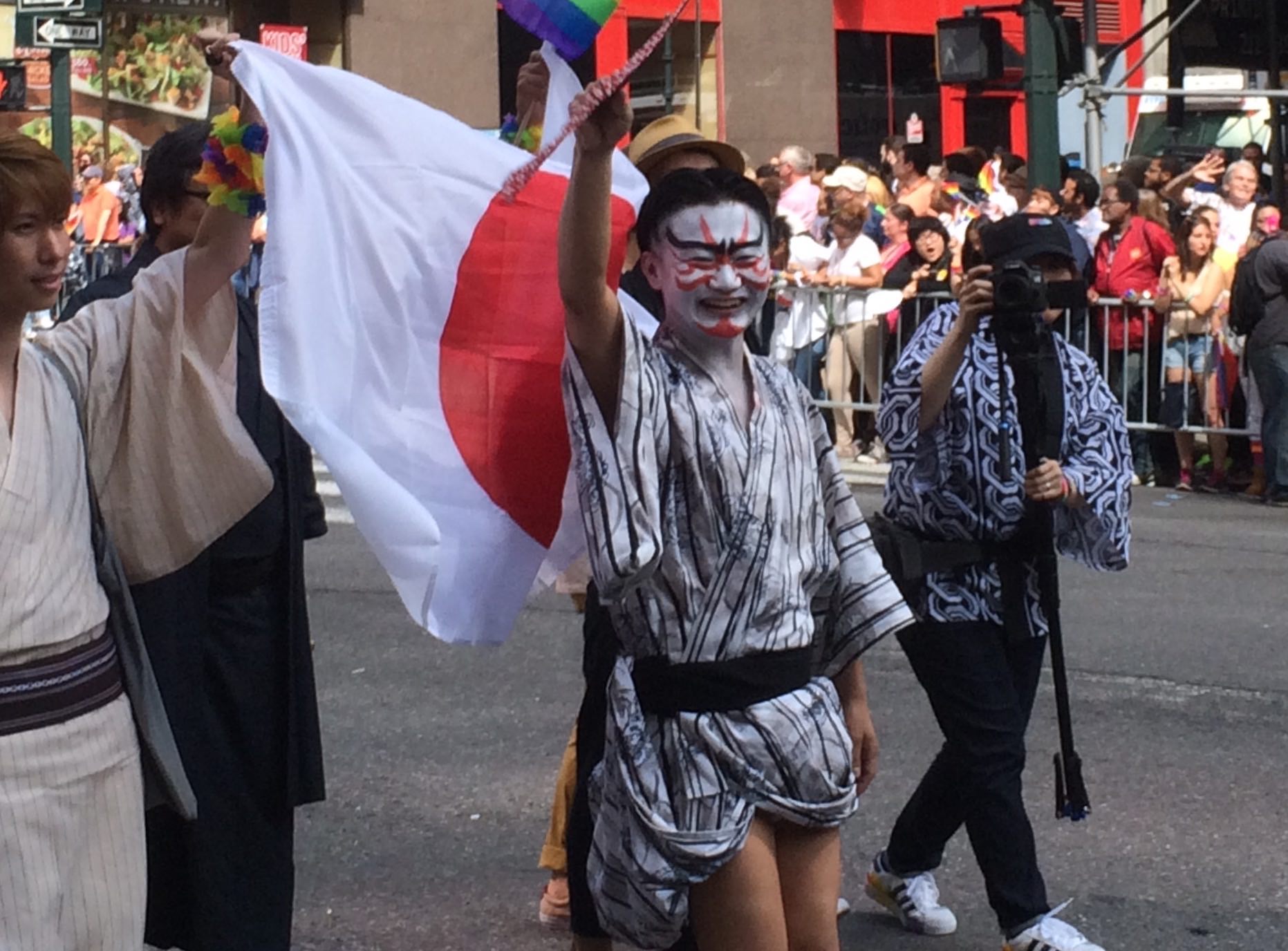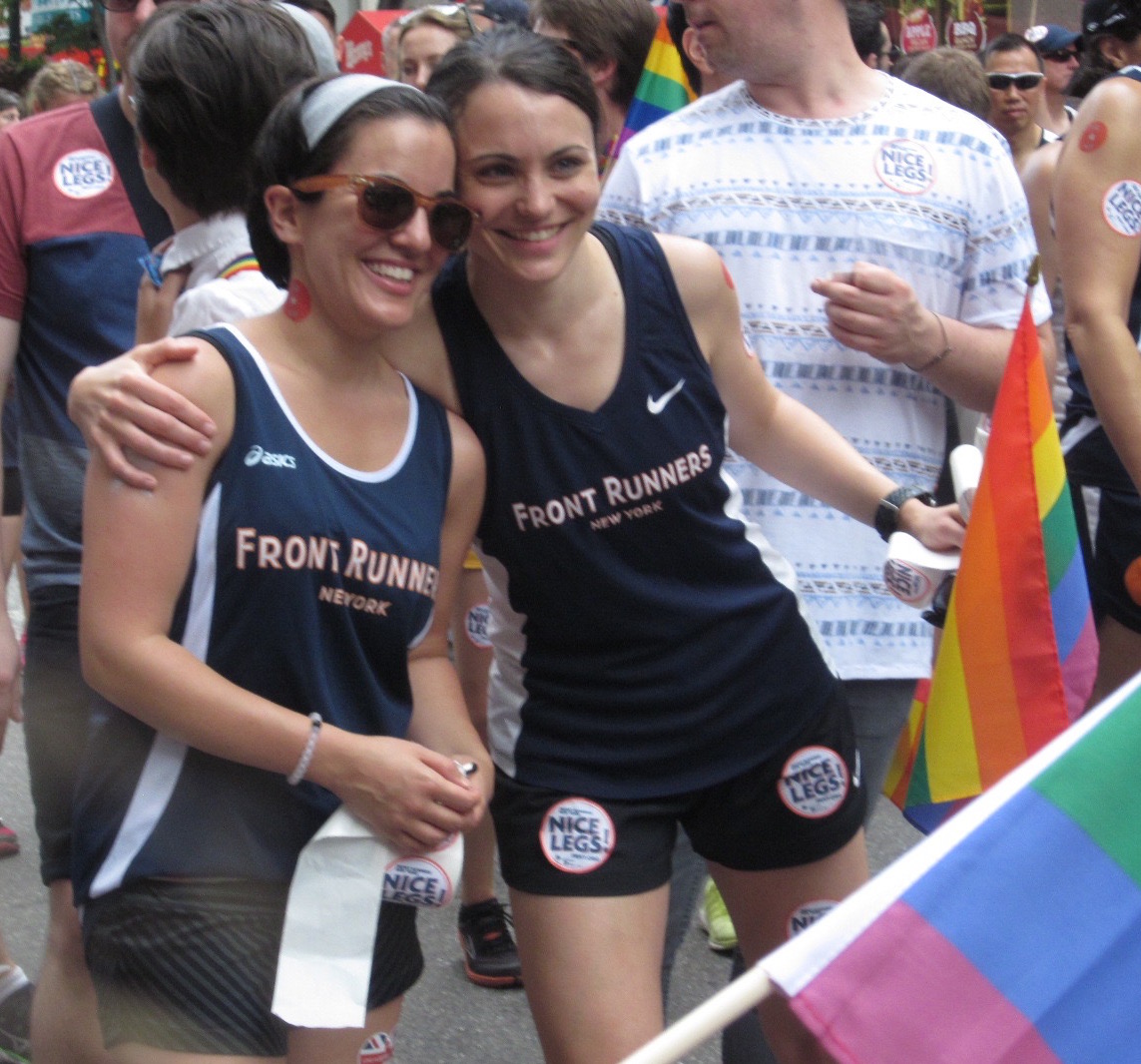 Weatherwise, it was a misty and cool Pride. People seemed more cold than hot, but many of the more scantily clad marchers did a lot of running down the route, so that very likely helped keep them warm. I even wore long sleeves and never broke a sweat once. That’s some kind of record for me these days. It definitely wasn’t leather weather for either of us. We don’t break those jackets out until fall.