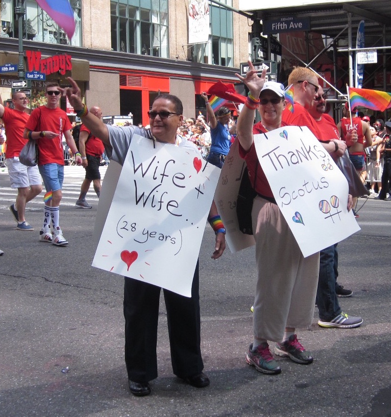 • I think that it’s wonderful that those guys could finally legalize their union, Val, but who was harmed by their 56 years together? Many marchers carried signs reading, “Love is love.” It’s comforting to know that simple fact was not lost on five SUPCO justices.