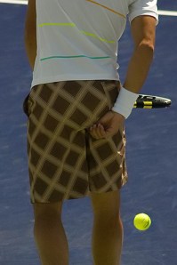 Milton is not blind to Rafa’s greatness, either, and he appreciates his athletic prowess, but when it comes to Rafa’s style or his trademark jock strap adjustment, Milton detonates. Milton is certain that Rafa is incapable of ordering a glass of wine without tugging at whatever’s wedged in-between his butt-cheeks. I am not a fan of this habit, but I pointed out to Milton that this quirk is an element ingrained in Rafa’s style of play. What completely drives Milton over the edge is Rafa’s history of dreadful wardrobe choices. Unlike my ability to defend the constant wedgie tugging I have to agree that pink shirts, plaid shorts, muscle tees, etc., are indefensible.