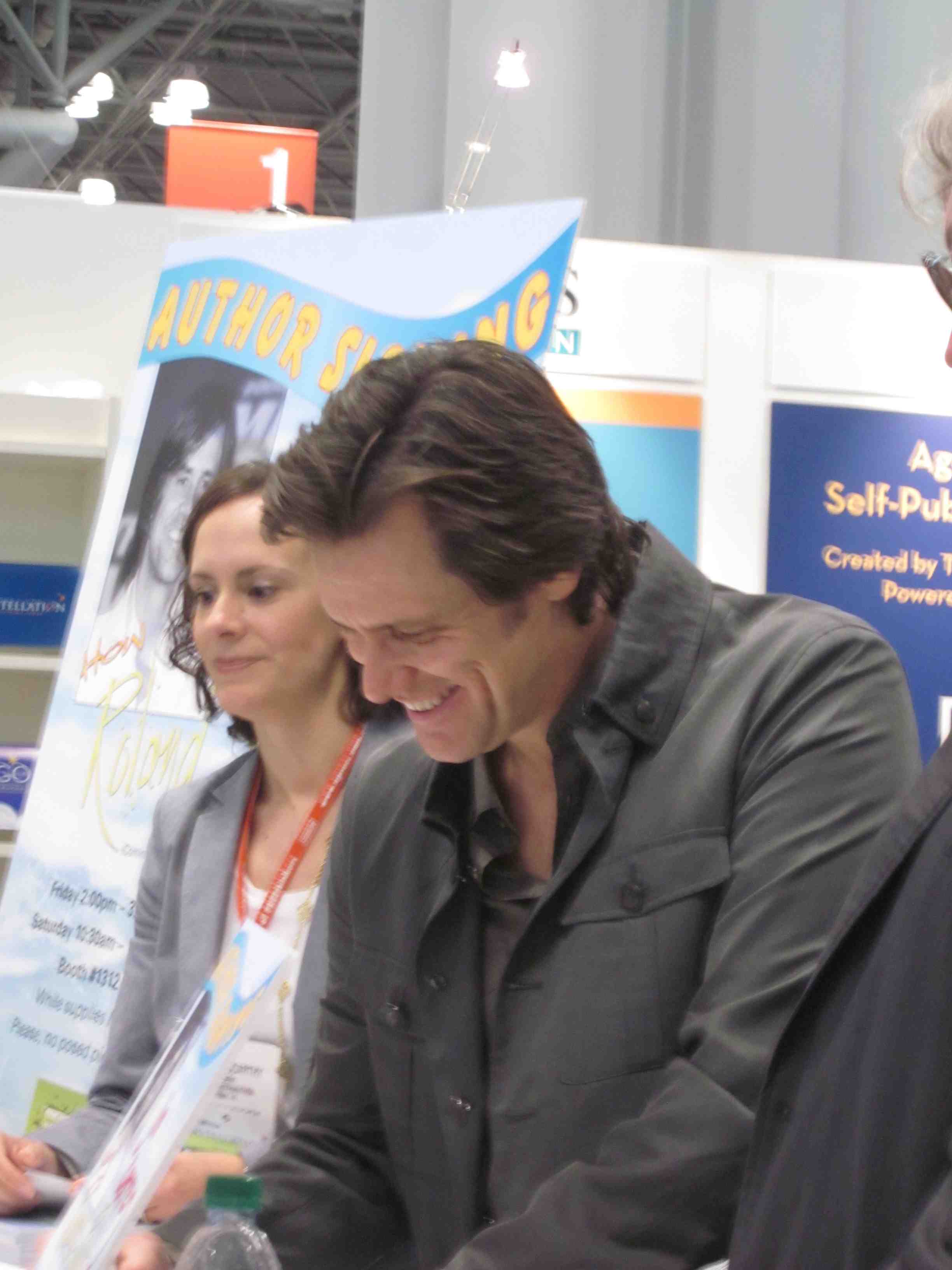 He was signing autographs to drum up buzz for his children’s book How Roland Rolls. He wrote it with kids and his own grandson in mind. Even though it seemed like I stood in his line for the better part of a week, I met a fellow self-published author named Rainey who lives in Arizona and bonded with her. Bonding with people makes the long line waiting almost enjoyable. The people in front of us were very friendly, too. There was such a commotion when Jim Carrey arrived; I thought that maybe it was for another famous guy with the initials “JC”. I’m not thinking Jimmy Carter.